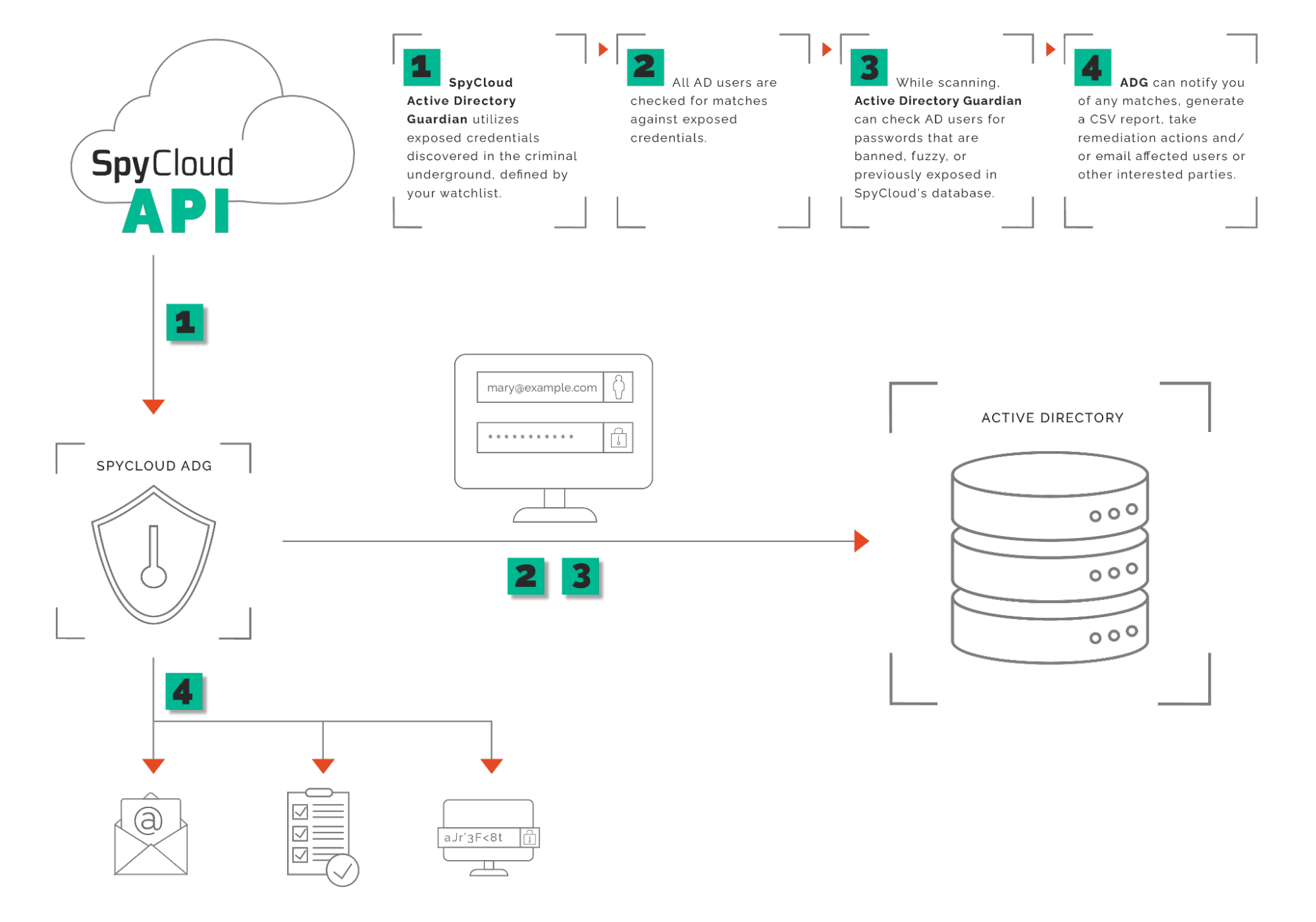 Active Directory Guardian (ADG) leverages SpyCloud’s API to protect your corporate Windows domain from Account Takeover (ATO) attacks. The software can be run either manually or on a schedule and checks for exposed credentials that may adversely affect your organization's security posture.