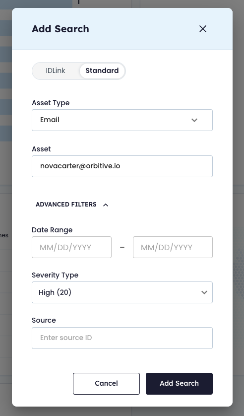 | Standard | Direct asset-based exposure search | Date Range, Severity Type, Source |
