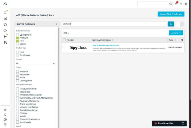 Once activated, SpyCloud data flows directly into ThreatStream.