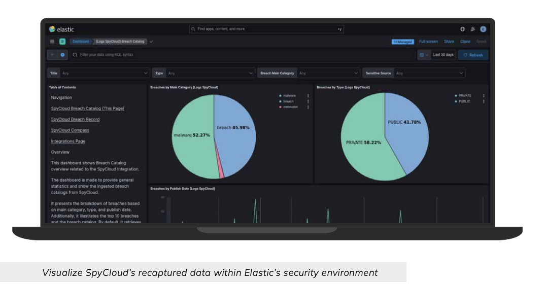 - Direct ingest of SpyCloud breach, malware, and phished exposure data into Elastic Security