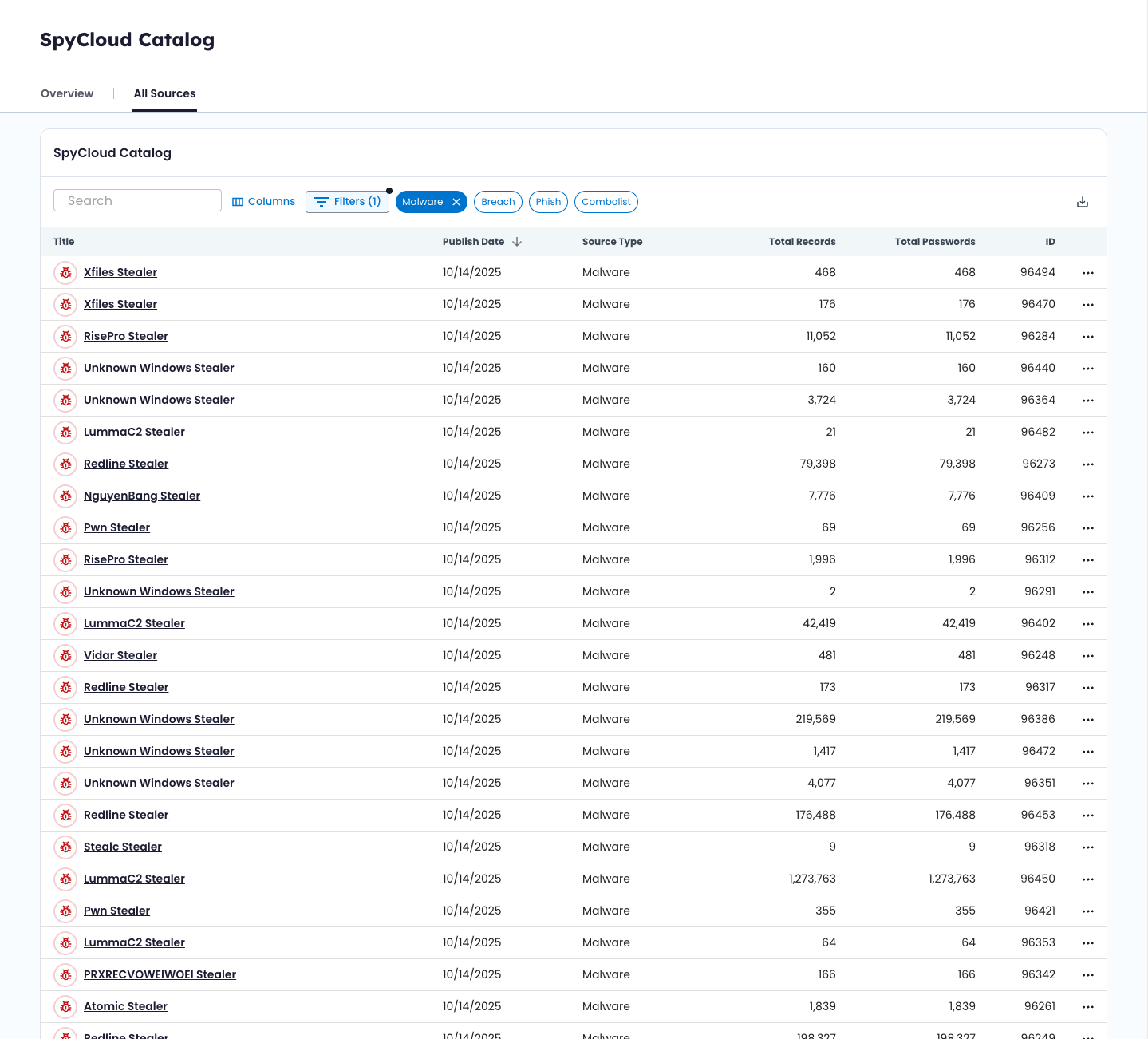 💡 Did you know? New malware and phishing records appear here shortly after ingestion – one of the fastest ways to see identity exposures SpyCloud has captured.