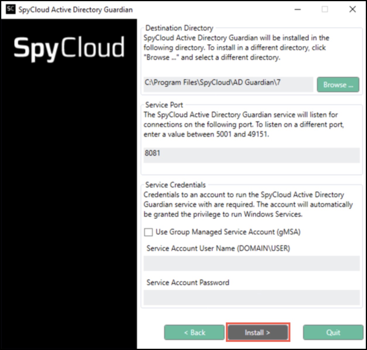 - Password (unless using gMSA)