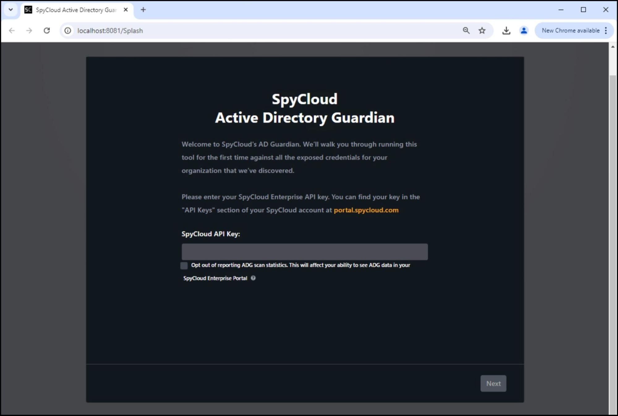 - Don’t have portal access? Ask your SpyCloud admin to create an account or download the installer for you.
