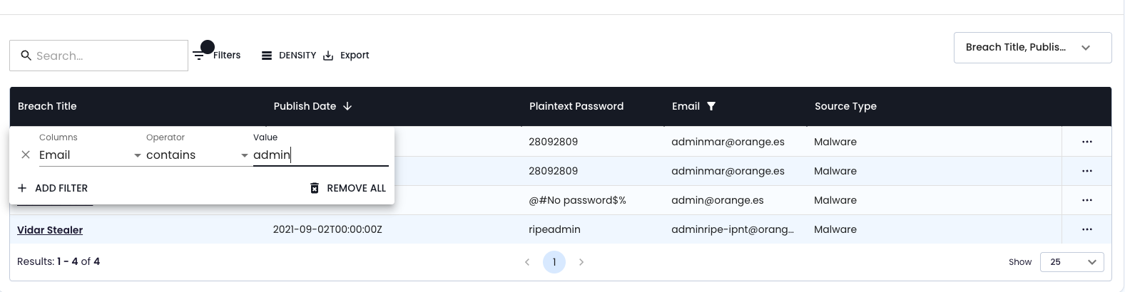 - SpyCloud filter: