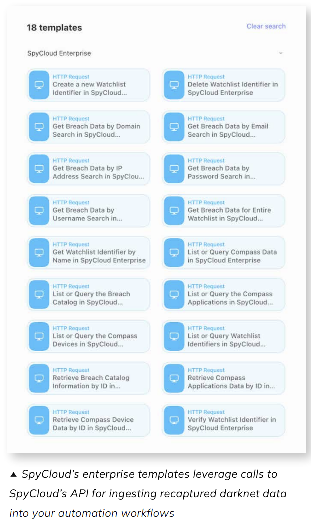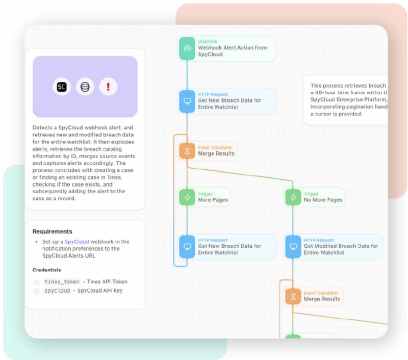 Kick off with SpyCloud starter templates in Tines and extend as needed: